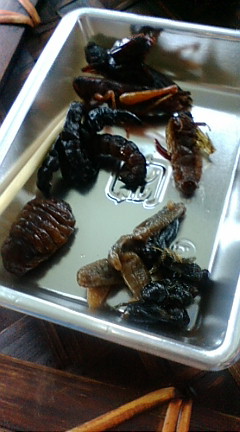 コガネムシの素揚げと、タガメの塩茹で。
