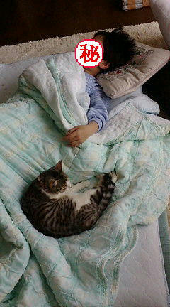 息子も、いつもはすぐ逃げちゃうハチが、一緒に眠ってくれるのが嬉しくてたまらなかったらしい。
