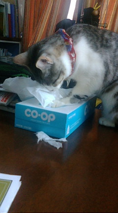 1、禁じられた遊び、「ティッシュを引っ張り出し」をしました。