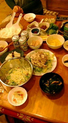 料理は手巻き寿司と豚の冷しゃぶサラダ。