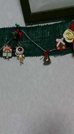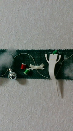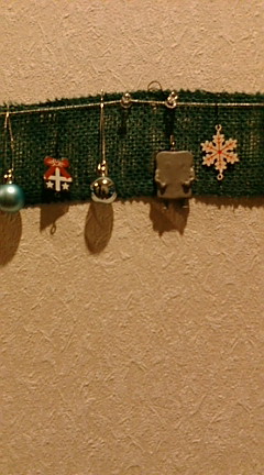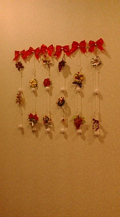 壁掛けは315円ショップののれんに、オーナメントをつけただけ。