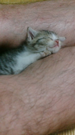 夫の足の指と戦ったり、猫らしい様子も出てきた。